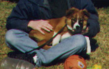 Here is Mom with the tennis ball. He won't take his eyes off of it as long as you are holding it.